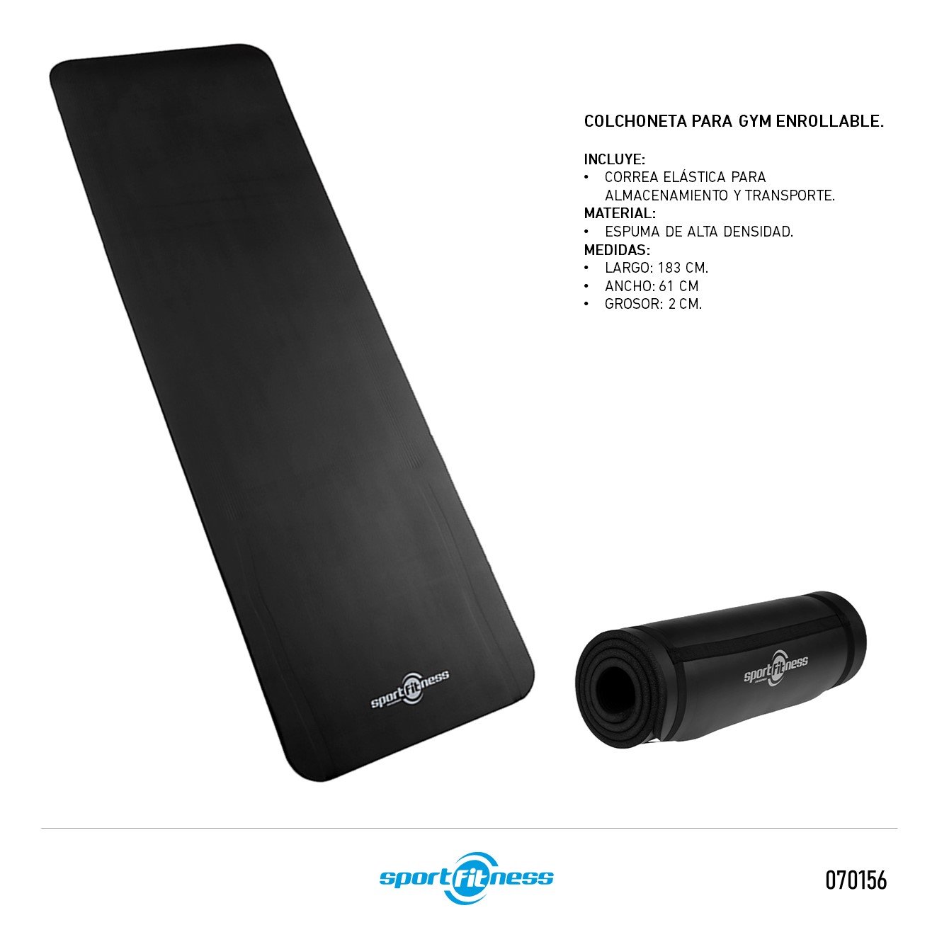 Las Colchonetas Sportfitness son un implemento esencial para un entrenamiento en el piso. La colchoneta está diseñada para proporcionar una absorción de impactos que reduzca la probabilidad de lesiones deportivas.
