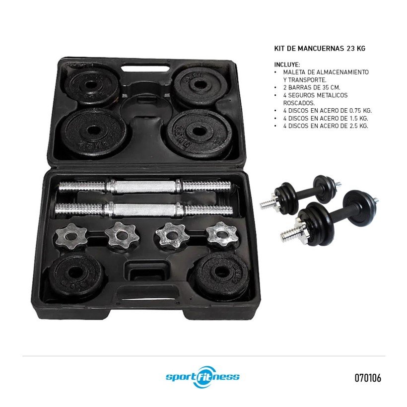 KIT DE MANCUERNAS BLACK PLATE – 23KG SPORTFITNESS